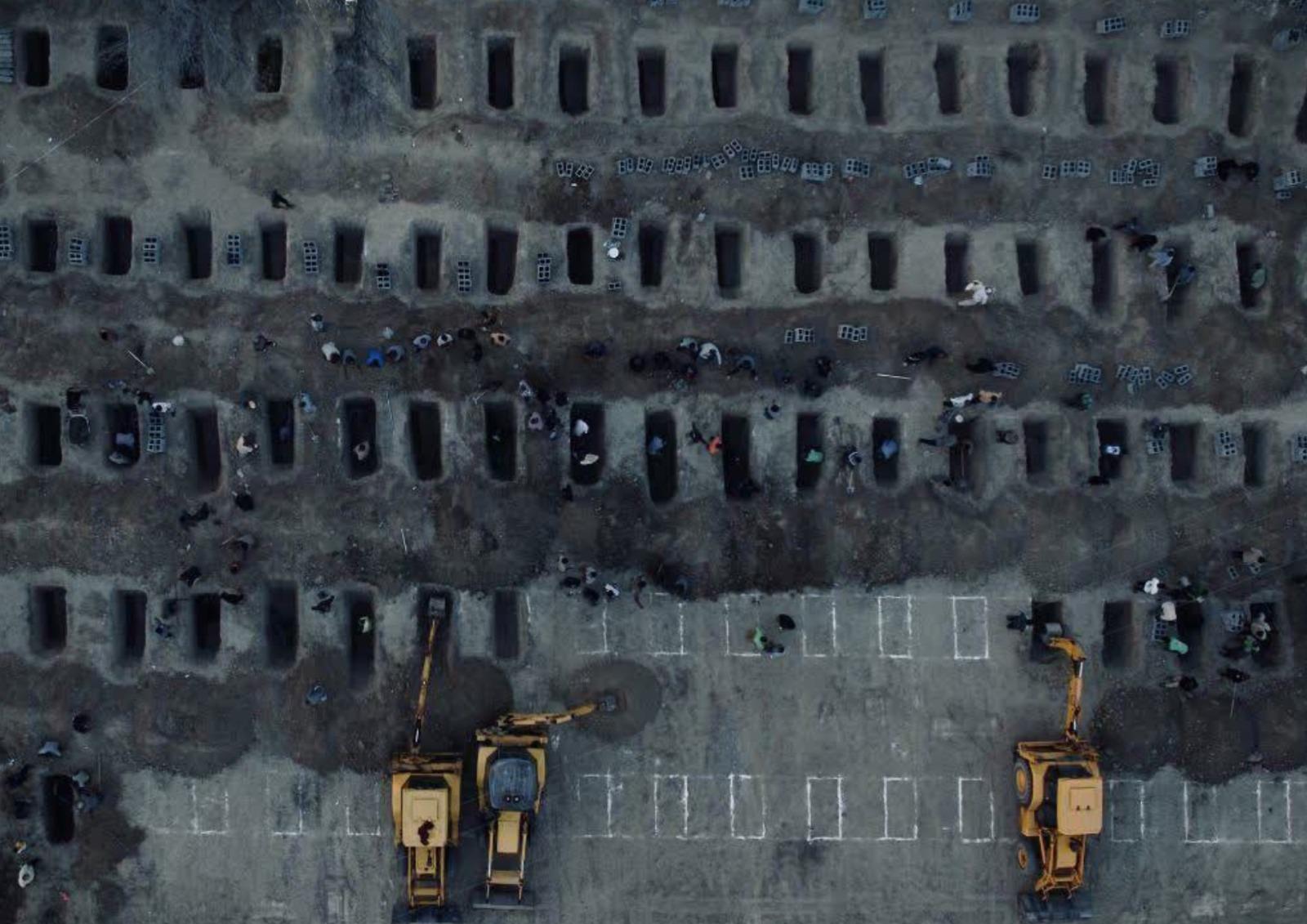 Okula dönük saldırıda hayatını kaybeden çocuklar için yan yana kazılan mezarların fotoğrafını gösteren Aslan, “Emperyalist barbarlığın kanlı yüzü bir kez daha gözler önüne serildi” dedi.