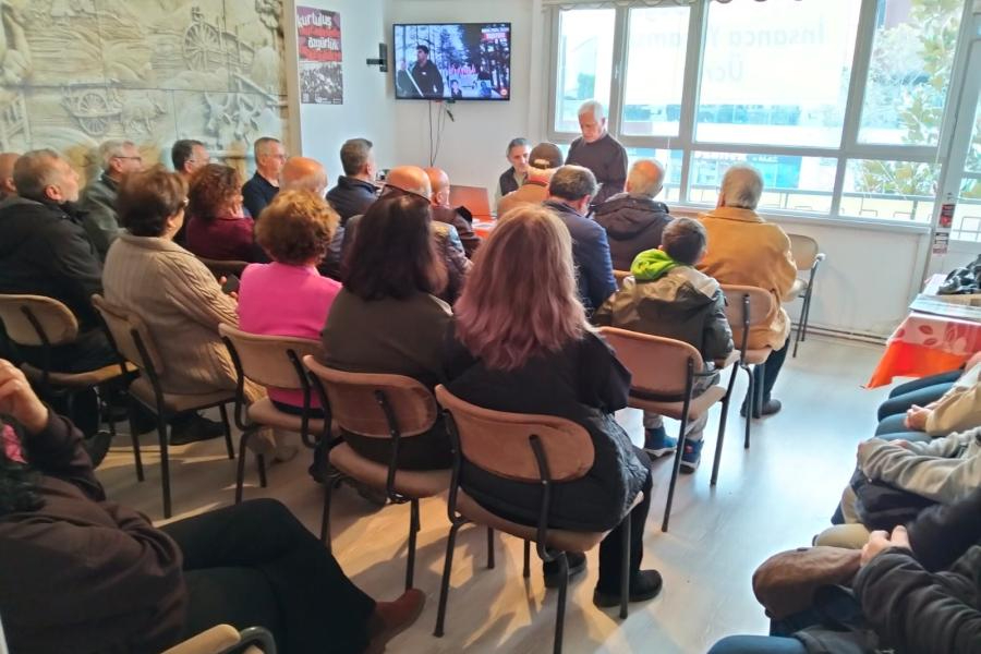 Emek gençliği basın açıklaması sonrası parti binasında topluca Oğlunuz Erdal belgeseli seyredildi.