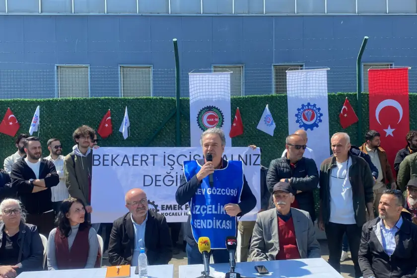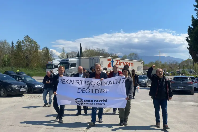 Kocaeli’nin İzmit ve Kartepe ilçelerinde faaliyet gösteren Belçika sermayeli Bekaert fabrikalarında, toplu iş sözleşmesi (TİS) görüşmelerinde uzlaşma sağlanamaması üzerine başlayan grev 8. gününü geride bıraktı. Emek Partisi (EMEP) İstanbul Milletvekili ve Genel Başkan Yardımcısı İskender Bayhan, grevdeki işçileri ziyaret ederek dayanışma mesajı verdi. Bayhan’a ziyaretinde EMEP Genel Başkan Yardımcısı Arzu Erkan, Kocaeli İl Başkanı İlhami Şahbaz ve parti üyeleri eşlik etti. Fabrika önünde işçilerle bir araya gelen Bayhan, sürecin sadece Bekaert işçisini değil, tüm işçi sınıfını ilgilendirdiğini vurguladı.