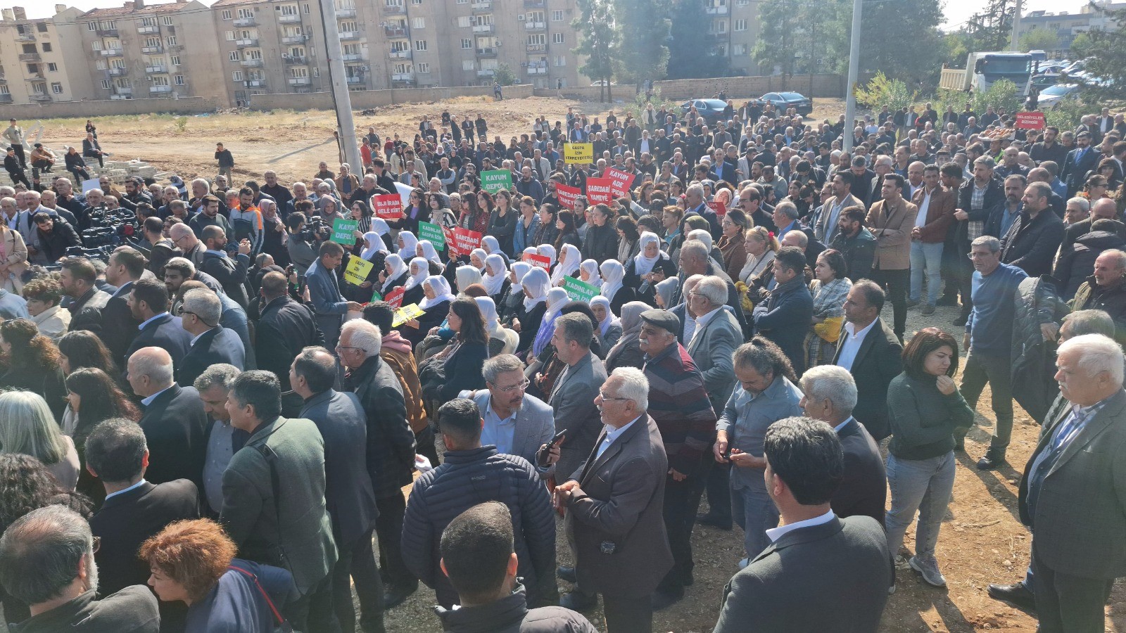 Biz kayyum ve kumpas siyasetinin aynı zamanda halkla iç içe olmanın, iktidarın çökerttiği yaşamın yeniden kurulmasının can damarı olan yerel yönetimlere yönelik olmasının da önemli olduğunu düşünüyoruz. Bu çökertme planı yerelden genele bütün halkı siyasetin dışına, barışın, eşitliğin, demokrasinin dışına itmeye çalışıyor. Bu dışa itme operasyonuyla birlikte bir bütün olarak ülkede tek adam rejiminin sermaye terörünü dizginsizce uygulamaya çalışıyor. Biz bu sermaye terörünün dizginsizliğine karşı işçilerin, emekçilerin, Kürt halkının barış mücadelesi, eşitlik mücadelesi, demokrasi mücadelesi, irade mücadelesiyle birleşmesi gerektiğini düşünüyoruz. Emek Partisi olarak nerede halkın iradesine bir ipotek koyma girişimi olursa orada halkla yan yana olmaya, mücadelemizi büyütmeye devam edeceğiz. Esenyurt’tan Mardin’e, Batman’dan Halfeti’ye nerede kayyum siyasetiyle, kumpas siyasetiyle seçilmişleri ortadan kaldırmaya, seçilmişleri iradesini veren halkın kazanımlarını ortadan kaldırmaya çalışan bir bölücülük varsa onun karşısında halkı birleştirmenin her yerde mücadelesini hep birlikte vereceğiz. Emek Partisi olarak buradayız.”
